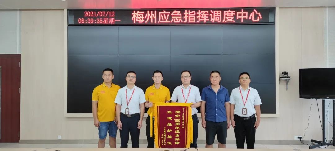 活动当天,各传输枢纽值守、干线盯防、仪表、车辆、应急物资全部到位,除落实安全人员24小时值班机制外,公司还部署实施了态势感知、应急响应、持续安全评估、安全监测巡检等措施,实现重保期间网络安全零事故。为此,米兰电竞公司通服被中国联通梅州市分公司授予“建党100周年通信保障先进维护单位”的荣誉锦旗。